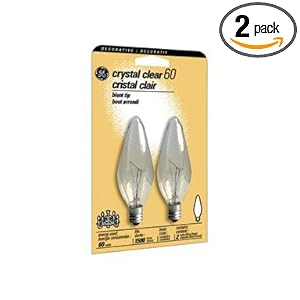Outfit your new chandelier or accent lamp right with this pack of two General Electric candelabra light bulbs. It's also a great idea to buy an extra pack to have new bulbs around for the future. 60 watt candelabra light bulb in clear. Two light bulbs per package. Price is for two bulbs.