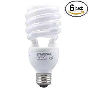 Sylvania 23-Watt Compact Fluorescent Mini Twist Soft White Light Bulbs are not only energy-efficient money savers, but they're also high-quality light producers. Unlike some CFLs that can be harsh and glaring, these bulbs provide a soft white light for a pleasant atmosphere. With six bulbs included, this pack is great for replacing all of the old, inefficient incandescent light bulbs in your home.