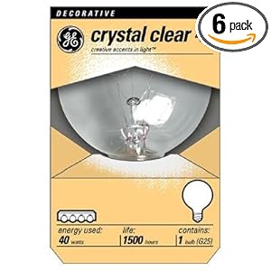 GE 40 Watt Crystal Clear Globe G25 Light Bulb. Clear bulbs add a decorative touch. Application: Vanity lights, pendant lights or any fixture where the bulb is visible. Base: Medium Screw (E26). Bulb Type: G25.
